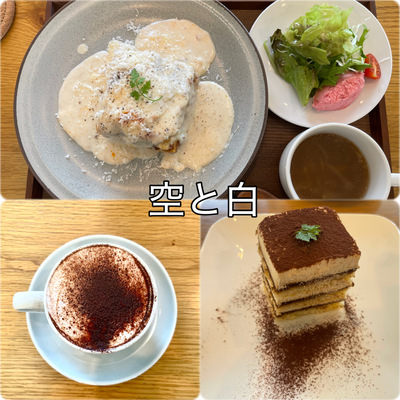2枚目の写真の空と白♪高校の時の友達と行ったランチ🍙