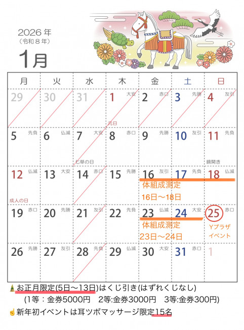 🎍謹賀新年🎍2026年1月スケジュールのお知らせ
