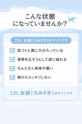 ✔ 姿勢よくしようとして逆に疲れる
